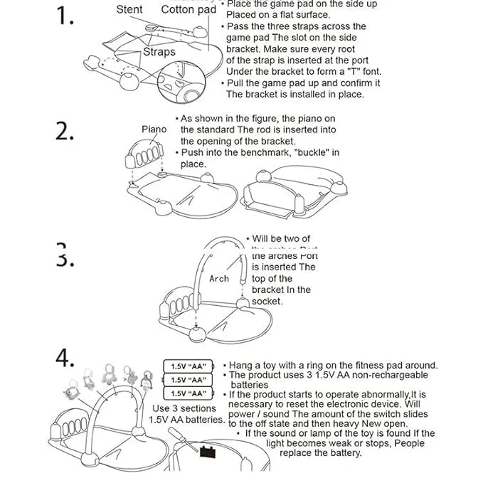 With built-in music, colorful lights, and a detachable 4-key piano, your baby can enjoy playful melodies while strengthening their leg muscles. The activity gym includes hanging toys, a safe mirror, and sensory elements that stimulate sight, touch, and hearing—making tummy time more fun.